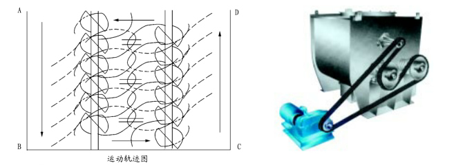 性能特點 一該機通過兩根等速反向旋轉軸上特殊布置的槳葉,使物料作徑向、環向、軸向三向運動,形成復合循環,在極短的時間內達到均勻混合。 一可進行固(粉)—固(粉)(粉體粒度300—2000um)混合。 一根據用戶要求,還可以另加噴液及夾套裝置,使之可作為固(粉)—液(含液量<15%的混合及干燥設備使用。 一對比重、粒度等物,性差異較大的物料混合時不產生偏折,而獲得十分均勻的混合物。 一混合精度,固—固混合在1:1000配比時,標準偏差為十萬分之三~八,含量波動誤差<2%(變異因子)。 一混合速度快,一般粉體混合只需十分鐘左右。 一能耗低,是一般混合機的1/4~1/10。 一可密閉操作,運轉平衡可靠,維修方便。 一手動、電動、氣動出料方式供您選擇。 工作原理 本機由電機通過減速機、鏈輪帶動二根平行的主軸以一定的轉速作等速反向轉動。 以一定角度安裝在主軸上的槳葉將物料拋灑到整個容器空間,使物料處于瞬間失重狀態,廣泛交錯對流、擴散,從而達到均勻混合。對比重和粒徑及形狀差異懸殊的物料混合時不會產生偏析,是一種迅速高效的粉體混合設備。本機可按用戶要求,增加夾套及分散棒,也可提供氣動出料及噴液裝置。接觸物料部分材質為碳鋼或不銹鋼。 技術參數