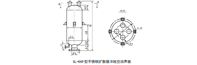 1110 | SL—KHP型不銹鋼擴散緩沖放空消聲器 結(jié)構(gòu)形式 本消聲器是一種擴容緩沖、小孔噴注與吸聲結(jié)構(gòu)相結(jié)合的復(fù)合消聲器,在材質(zhì)上采用既抗燃又耐腐蝕的不銹鋼,適用于氧氣、氮氣、空氣、化工工藝氣體及水蒸汽在排放時產(chǎn)生的排氣噴流噪聲。