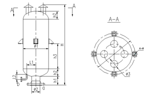 DN150 PN2.5 | Notes: The rated steam pressure is designed according to 1.3Mpa. For example, if the pressure of the exhausted steam is 0.8Mpa, the selected silencer should be bigger than one grade of the exhausting pipe, if the pressure of the exhausted steam is 2.0Mpa, the selected silencer should be less than one grade of the exhausting pipe. SL-KXP boiler steam vent silencer Structure This series silencer belongs to small-pore jetting and volume expansion complex silencer in characteristics of lightweight, small package and wide waveband.