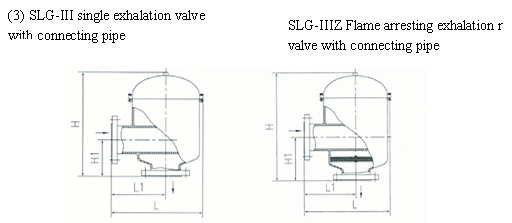 Main technical specifications ◆Suitable to special liquid and gas of petroleum, chemical, medicinal energy engineering; ◆ Operating pressure: A: -295Pa (-30mmH2O) +355Pa (+36mmH2O) B: -295Pa (-30mmH2O) +980Pa (+100mmH2O) C: -295Pa (-30mmH2O) +1750Pa (+180mmH2O) D: -295Pa (-30mmH2O) +98000Pa (+10000mmH2O) ◆Explosion class; BS 5501:IIA、IIB、IIC ◆Shell material: Carbon steel Al. alloy, ◆Material of valve disc and seat: Al.alloy, stainless steel; ◆Sealing material: Tetrafluoroethylene; ◆Flange standards: HG20592-97 PN1.0. If the customer requires GB,HGJ, JB, ANSI,JIS or change pressure grade, clear it in the contract. ◆Manufacturing, test and inspection should be in accordance with standards: SY7511, 《Manufacturing, test and inspection of breather valve used for petroleum container 》, GB5908-1986 《Fire arrestment performance and test methods of arrestor used for petroleum container》. Product model and specifications